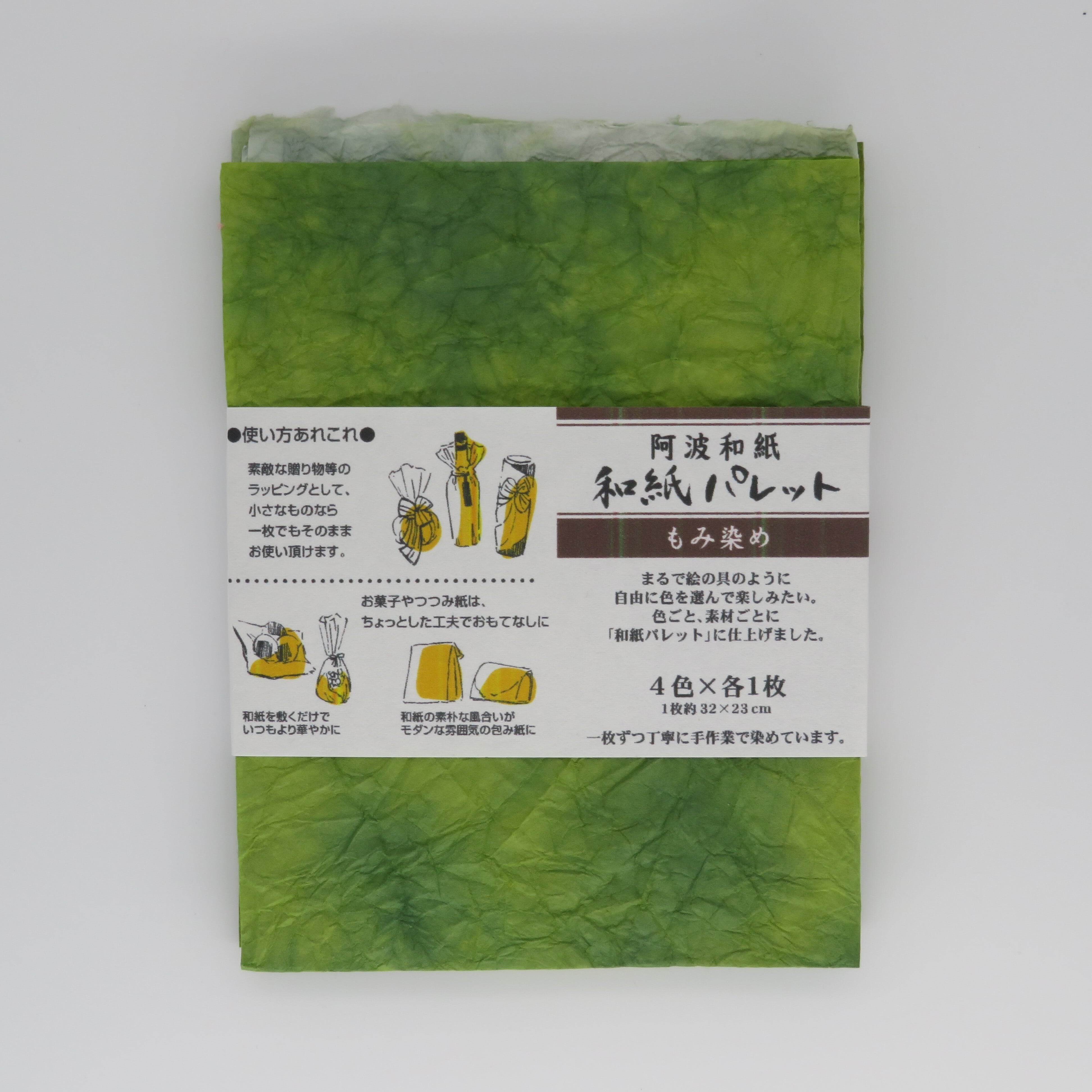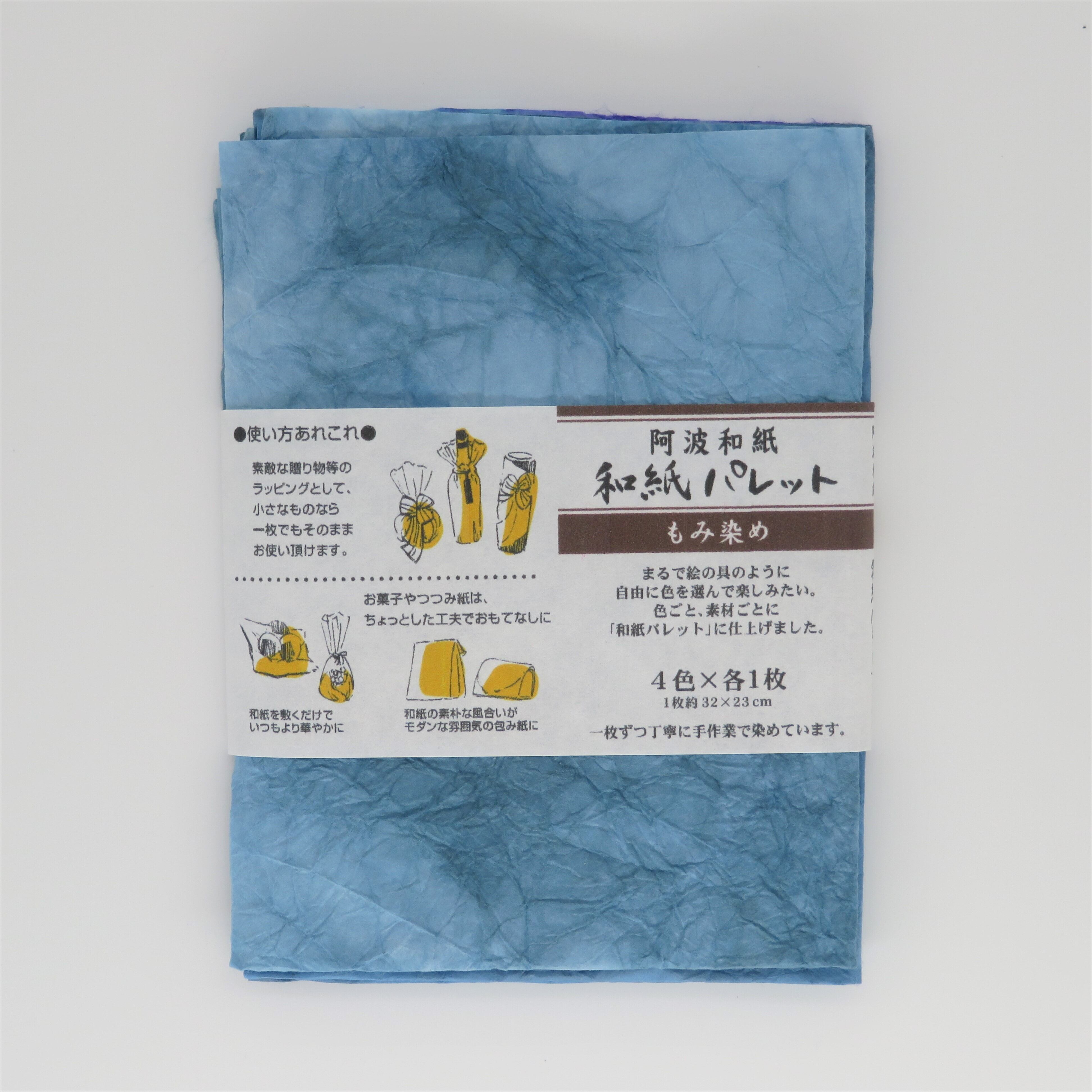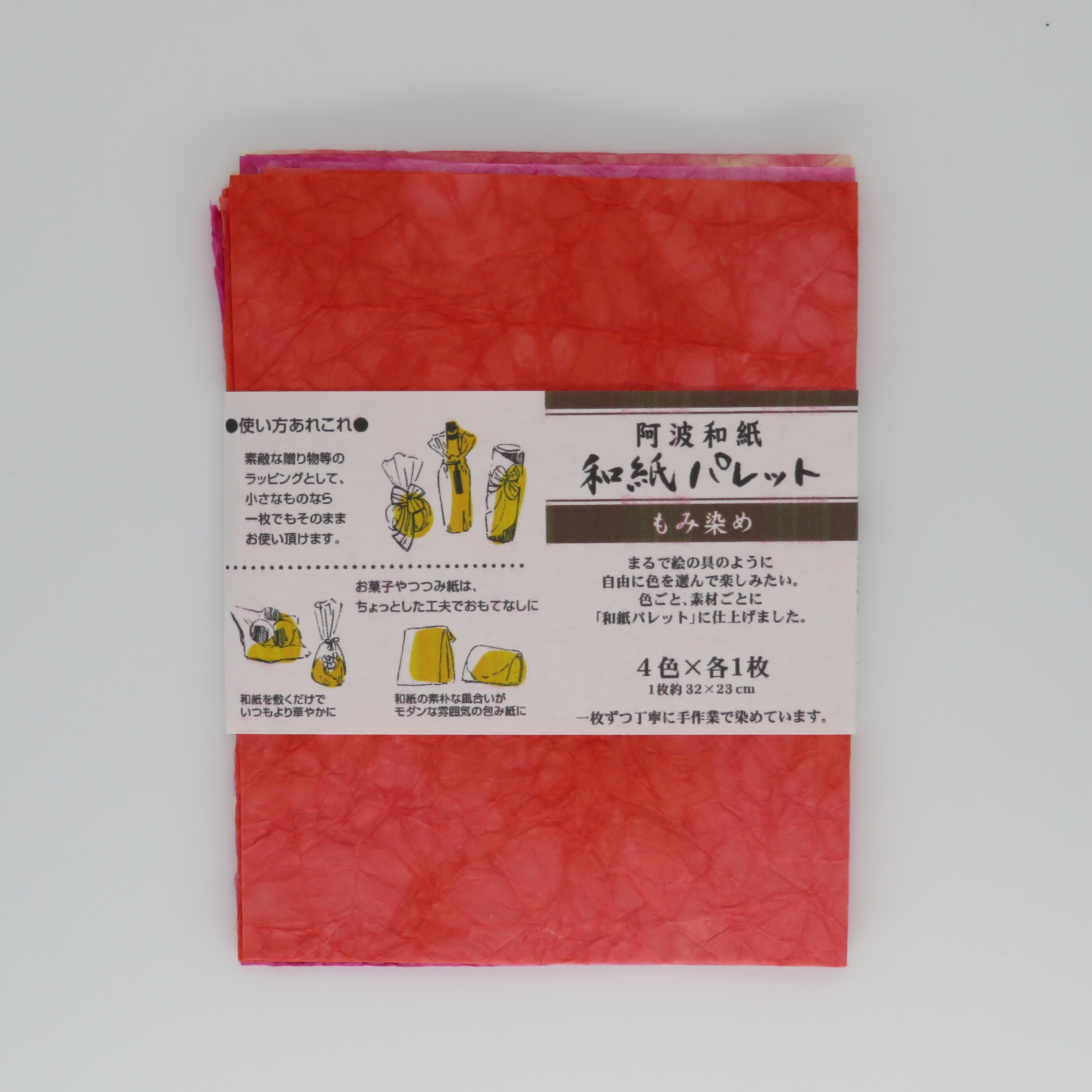 「もみ染紙」は、和紙を一枚一枚、手でもみ、2〜3色の染料に浸け染めした和紙です。